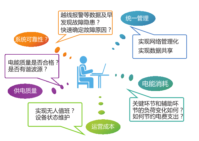 電能管理系統(tǒng)通過(guò)配置在重要回路上的電能監(jiān)測(cè)裝置實(shí)現(xiàn)實(shí)時(shí)采集各個(gè)節(jié)點(diǎn)的電能信息,借助專(zhuān)業(yè)的電能管理軟件實(shí)時(shí)查詢(xún)、挖掘用電數(shù)據(jù)信息,保證電氣系統(tǒng)的安全運(yùn)行,并診斷潛在的節(jié)電環(huán)節(jié),從而達(dá)到科學(xué)管理企業(yè)用電的目標(biāo)。