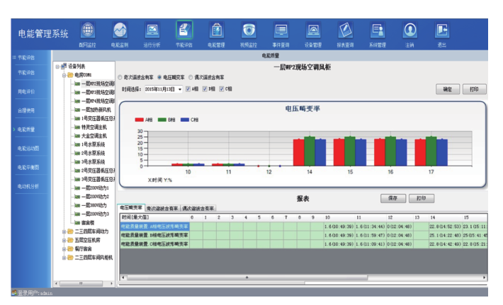 通過(guò)實(shí)時(shí)監(jiān)測(cè)記錄設(shè)備運(yùn)行的奇、偶次諧波含有率及電壓畸變率數(shù)據(jù),對(duì)各設(shè)備的用能質(zhì)量提供了可供診斷參考的數(shù)據(jù),從而為提高設(shè)備用能質(zhì)量提供了調(diào)整的方向及依據(jù)