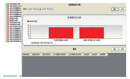 電動(dòng)機(jī)分析可以查看重要電動(dòng)機(jī)的運(yùn)行時(shí)間及檢修時(shí)間,方便對(duì)重要設(shè)備的管理,配合負(fù)荷率可以分析電機(jī)的最優(yōu)運(yùn)行方式